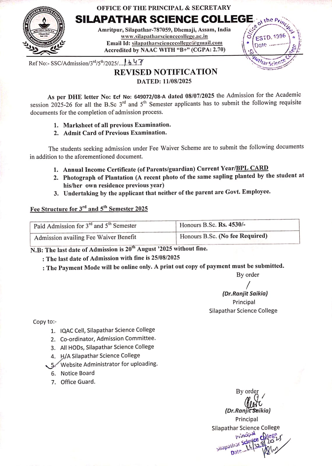 Notification regarding conduction of swearing in ceremony of Silapathar Science College Students' Union 2025-26 |